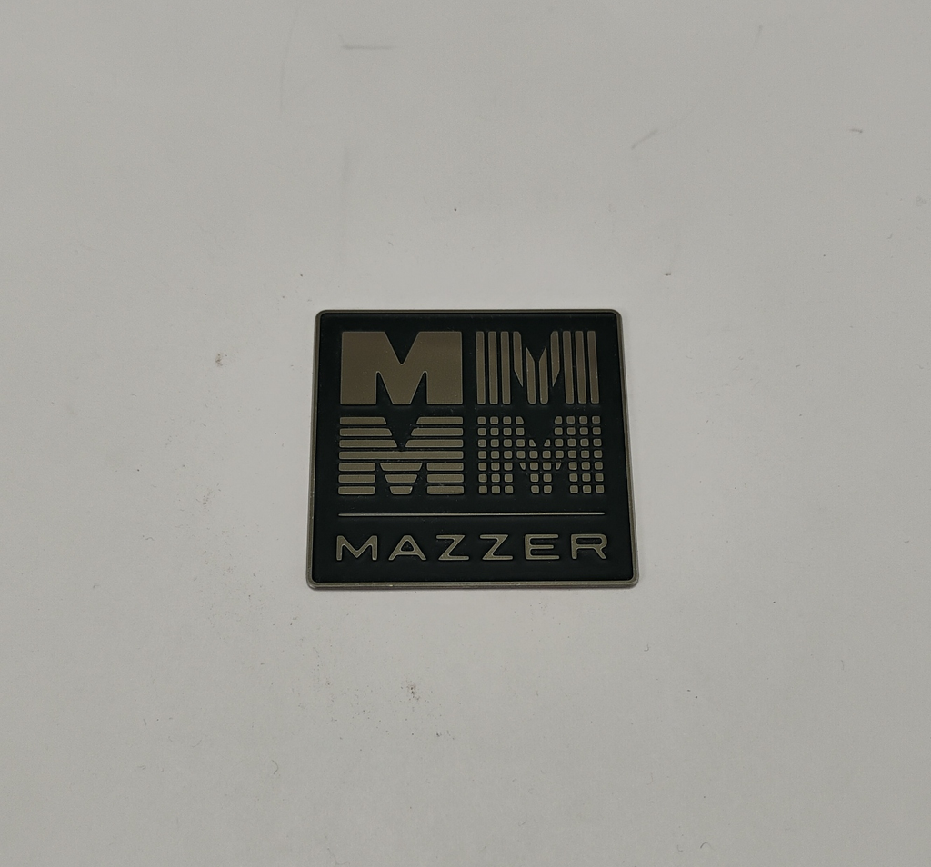 This is a new smaller version, measuring 42 mm square. It may not be large enough to cover up the holes on the back body of the grinder of older models, where the old large logo plaque was affixed.